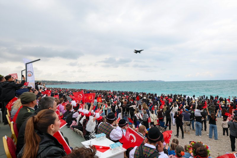 Antalya Valiliği ve Büyükşehir Belediyesi işbirliğiyle 23 Nisan Ulusal Egemenlik ve Çocuk Bayramı kutlamaları kapsamında SOLOTÜRK akrobasi timi Konyaaltı Sahili’nde muhteşem bir gösteriye imza attı. Binlerce Antalyalı da gösteriyi izlemek için ellerinde Türk bayraklarıyla sahile akın etti. Antalya Valisi Hulusi Şahin, Antalya Büyükşehir Belediyesi Başkan Vekili Büşra Özdemir de gösteriyi Çocuk Başkan Can Toprak Güven ile birlikte izledi.