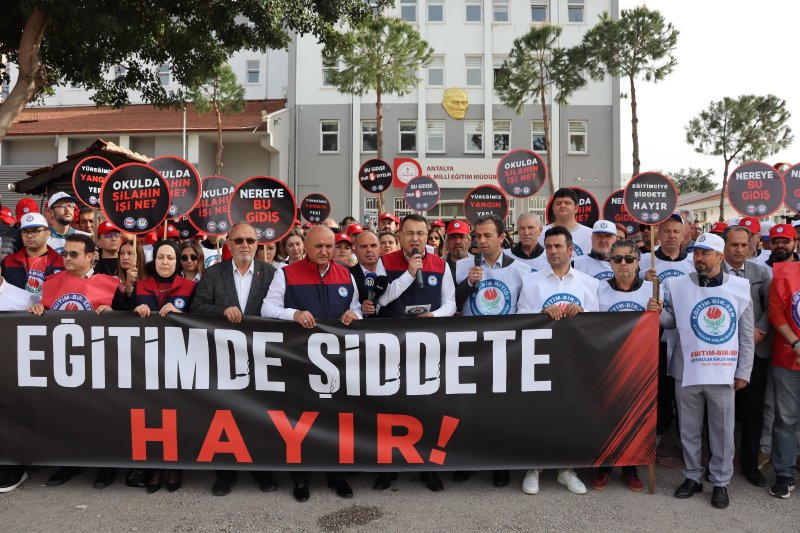 Protestoya Eğitim Bir Sen Genel Başkan Yardımcısı Mesut Öner, Memur Sen Antalya Temsilcisi ve Eğitim Bir Sen Şube Başkanı Eyüp Bülent Miran ve Yönetim Kurulu üyelerinin yanı sıra sendika ilçe teşkilatlarına üye eğitim çalışanları katıldı. Basın açıklamasını yapan Mesut Öner, art arda yaşanan saldırıların eğitim camiasında derin bir üzüntü ve endişe yarattığını belirtti. Şanlıurfa’nın Siverek ilçesinde bulunan Ahmet Koyuncu Mesleki ve Teknik Anadolu Lisesi’nde eski bir öğrenci tarafından gerçekleştirilen saldırının şokunun atlatılamadan, Kahramanmaraş’ta yaşanan ikinci olayın kamuoyunu adeta sarstığını ifade etti.