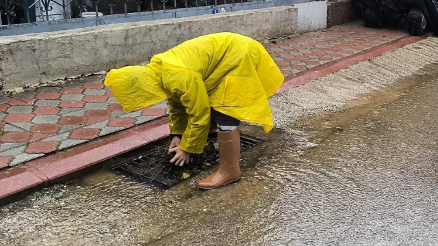 Kemer Belediye ekipleri, sağanak yağmur nedeniyle tıkanan mazgalların ve rögarların temizlik çalışmalarını aralıksız sürdürüyor.