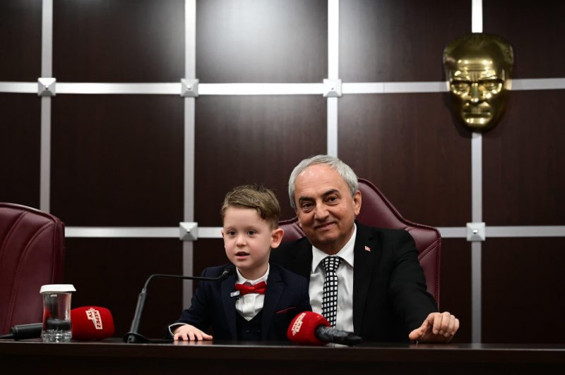 Konuşmasının ardından Başkan Kocagöz, meclis başkanlık koltuğunu 5 yaşındaki Yavuz Selim Şahin’e devretti ve çocuk meclis üyelerinin arasına oturdu.