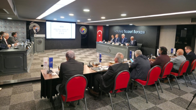 Antalya Ticaret Borsası (ATB) Kasım Ayı Meclis Toplantısı, ATB Meclis Başkanı Erdoğan Ekinci başkanlığında ATB Meclis Salonu’nda yapıldı. Meclis’te yönetimin bir aylık çalışmasıyla ilgili üyeler bilgilendirilirken, ATB Yönetim Kurulu Başkan Vekili Halil Bülbül, tarım, ülke ve kent ekonomisine ilişkin değerlendirmelerde bulundu.