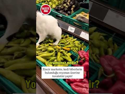 Zincir markette biberlerin üzerine işeyen kedi gündem oldu #haber #gündem #kedi #yemek